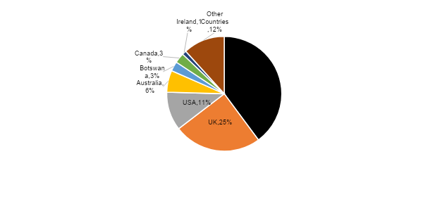 Other major sources are the United States of America (11%) and Australia (6%).