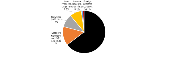 In 2022, total international remittances (diaspora remittances and NGOs) amounted to US$2,8 billion, an increase of 16% from US$2,4 billion in 2021.