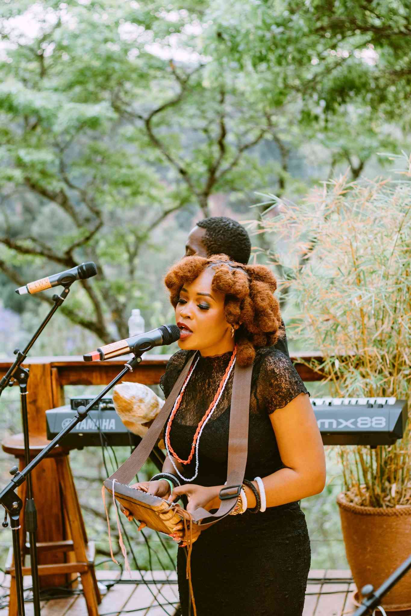 As the sun went down and fairy lights began flickering, Mitchel Mvundura closed the concert, with stage lights shining on her face.