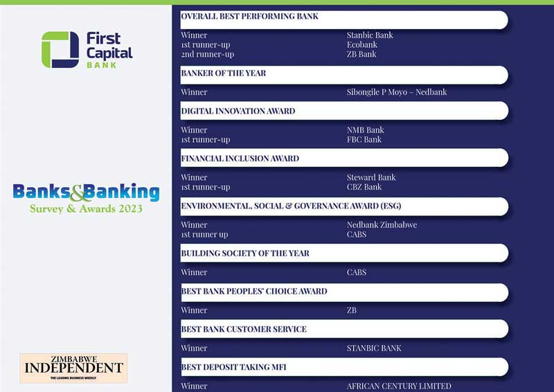 ZB Bank Ltd won the Best People’s Choice award, while Stanbic picked its second award as the Best Bank for Customer Service and African Century Limited won the award for the Best Deposit Taking Micro-Finance Institution Supporting Small to Medium Enterprises.